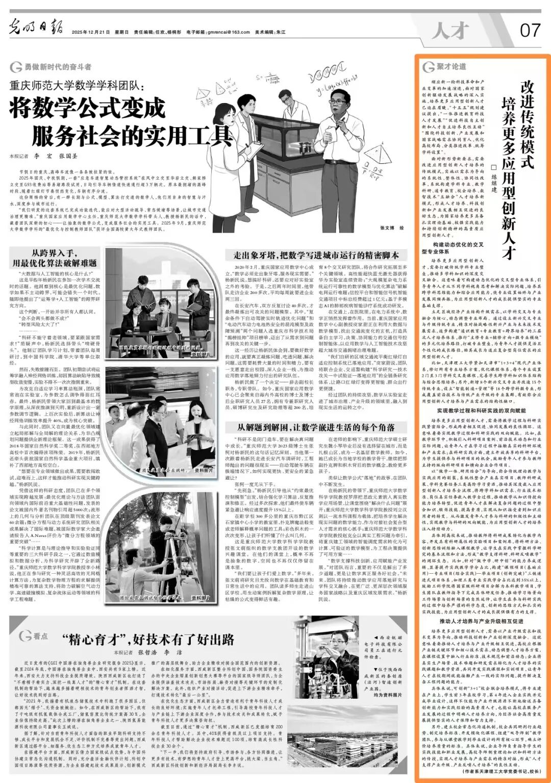 2025年12月21日,《光明日报》“人才”版面刊发我校党委书记、校长练继建的署名文章《改进传统模式 培养更多应用型创新人才》。