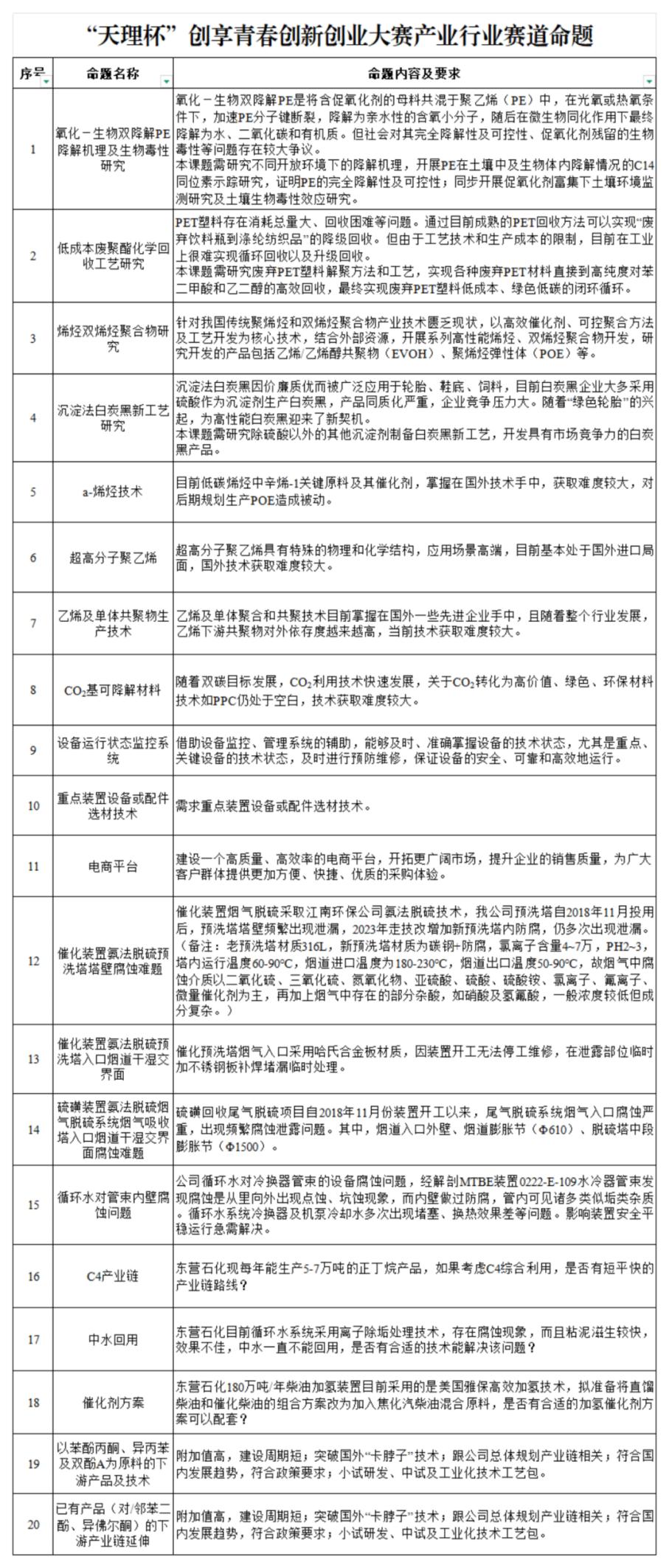 日前备受关注的“天理杯”创享青春创新创业大赛产业行业赛道命题正式出炉!