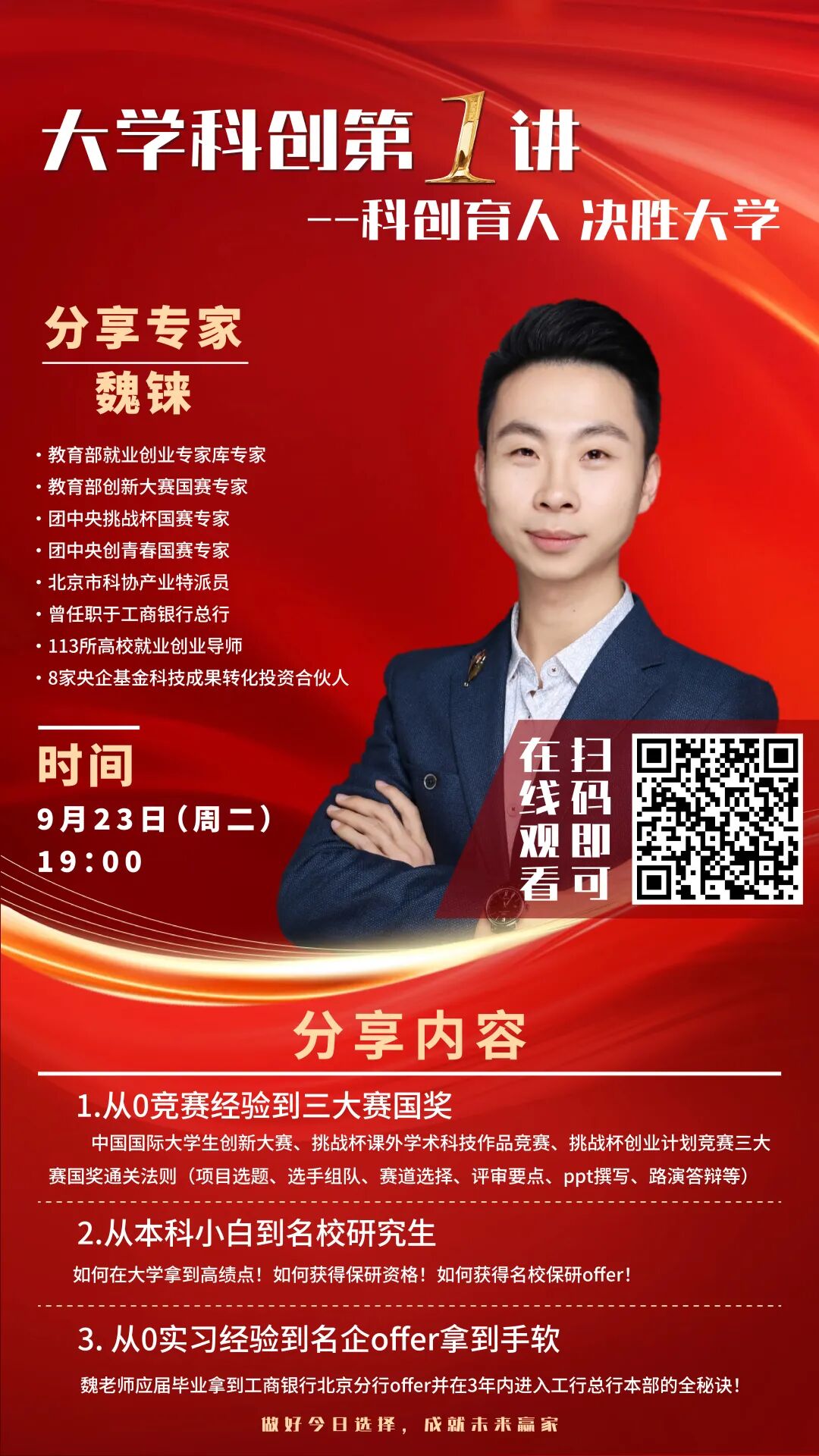 为积极响应国家大力推进高等学校创新创业教育的号召,激发大学生创新创业热情,营造浓郁创新创业氛围,在“天理杯”争霸赛期间邀请专家分享科创经验,安排如下: