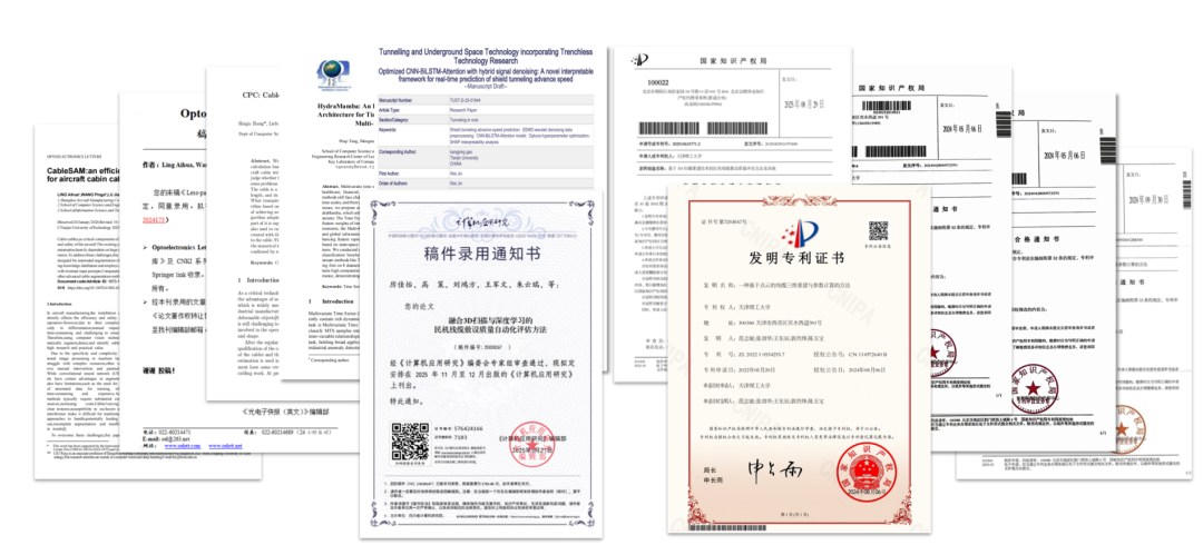项目荣获中国国际大学生创新大赛(2025)天津赛区金奖、第十八届“挑战杯”天津市大学生课外学术科技作品竞赛一等奖;已授权及公开国家发明专利5项,发表SCI、中文核心期刊等学术论文6篇,并通过教育部科技查新,获院士团队高度评价。