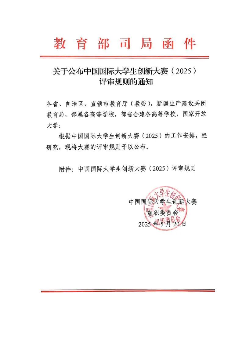 赛事速递丨关于公布中国国际大学生创新大赛(2025)评审规则的通知